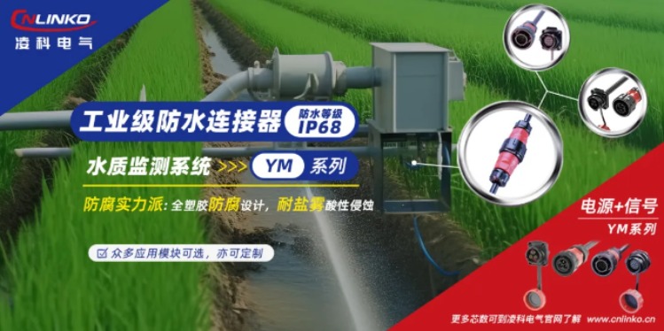 對(duì)于水質(zhì)監(jiān)測系統(tǒng),要用到電源連接器和信號(hào)連接器。分別提供電源連接支持和傳感器信號(hào)的傳導(dǎo)。凌科YM系列工業(yè)級(jí)連接器,以嚴(yán)苛的設(shè)計(jì)和制造標(biāo)準(zhǔn)打造,實(shí)現(xiàn)IP68級(jí)高防水性能,可在水質(zhì)監(jiān)測系統(tǒng)的潮濕和水液環(huán)境下提供更強(qiáng)防護(hù)。