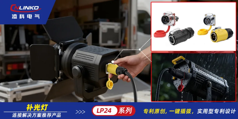 凌科上述LP系列工業(yè)級(jí)連接器產(chǎn)品,采用按扣式直插連接結(jié)構(gòu),可單手插拔,操作簡(jiǎn)單高效,方便補(bǔ)光燈現(xiàn)場(chǎng)快速斷連連接器,更顯人性化。