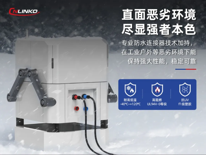 焊接作業(yè)過程中會存在焊花飛濺,同時也會釋放大量熱量造成現(xiàn)場局部溫度過高,這也非??简?yàn)連接器的耐高溫及防火阻燃能力。凌科DL28連接器耐環(huán)境溫度高達(dá)120℃,且阻燃等級為UL94 V-0級,完全能滿足焊接設(shè)備作業(yè)過程中對連接器耐溫及防火阻燃安全要求。