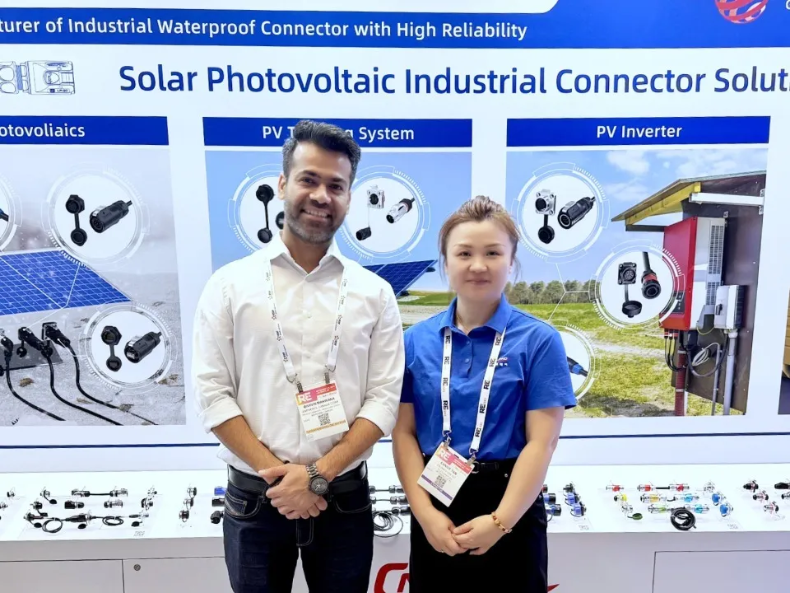 本次展會聚焦太陽能與儲能領域,凌科亦是重點展列了面向光伏系統(tǒng)、逆變器、移動戶外儲能等領域的工業(yè)級連接器方案。如: