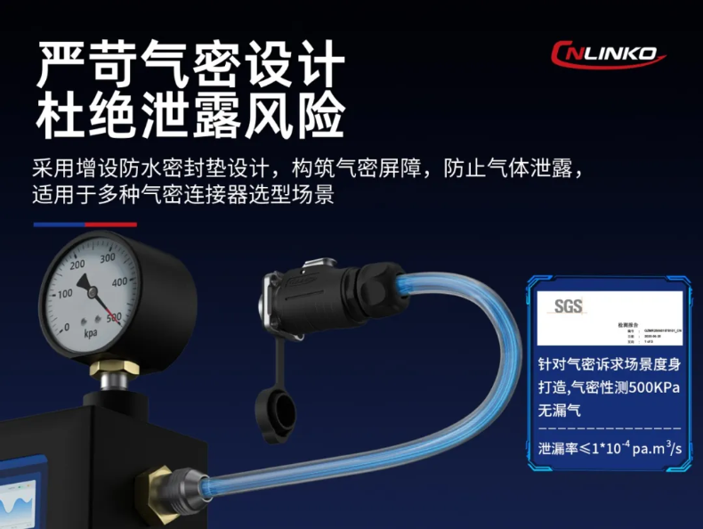 基于LP系列成熟架構(gòu)深度開發(fā),LP20型連接器通過嚴(yán)苛的500KPa氣密性測試(零泄漏),其卓越密封性能源于以下核心技術(shù)保障: