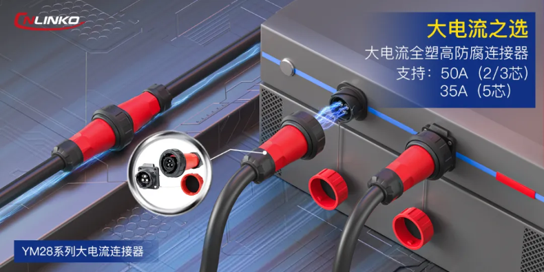 如果您正在尋找一款最高額定電流50A以內(nèi)的工業(yè)級高可靠大電流連接器,不妨了解下凌科這款YM28系列大電流防水連接器產(chǎn)品!
