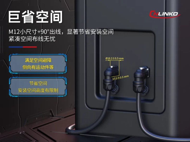 ②m12小尺寸并結(jié)合90°彎頭結(jié)構(gòu),能讓安裝省空間的效率發(fā)揮到極致;