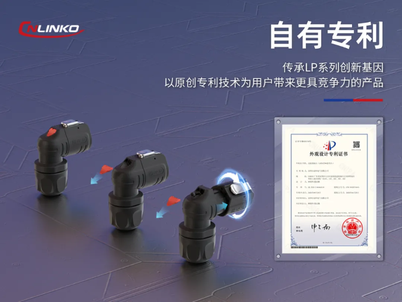 LP12系列90°連接器榮獲“一種可快速組裝的90度彎頭防水連接器”發(fā)明專利,可實現(xiàn)產(chǎn)品快速安裝與拆卸,整個拆裝與現(xiàn)場布線效率大幅提高。