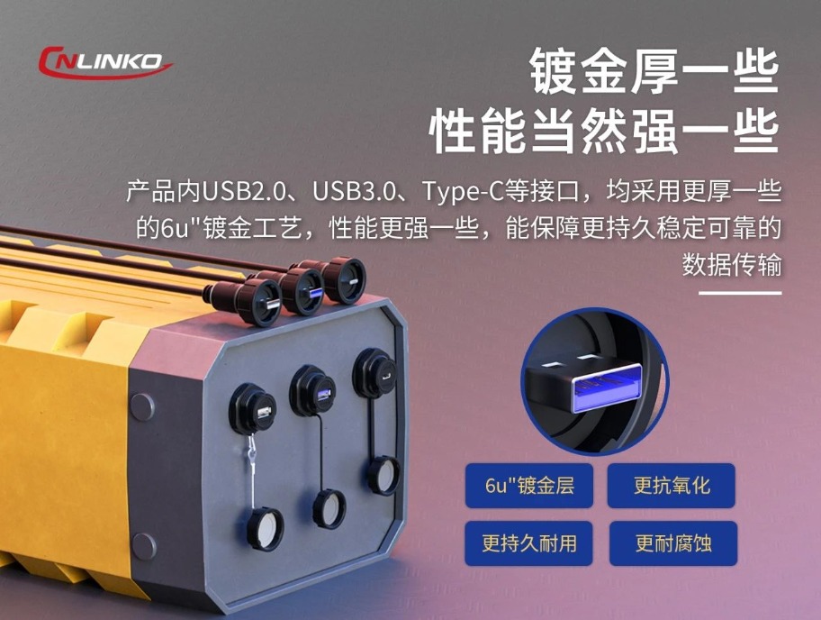 產(chǎn)品內(nèi)的USB與Type-C接口,均采用了6u"鍍金工藝,通常鍍金層厚一些,耐磨抗腐、導(dǎo)電、耐久性等性能都會(huì)更優(yōu)一些,因而在長(zhǎng)期的使用中,無(wú)論是公母針的正常磨損,還是經(jīng)常插拔都會(huì)在一定程度上造成微磨損,但對(duì)于鍍金層厚一些的接觸件而言,則相對(duì)更為穩(wěn)定,性能不存在過(guò)大的波動(dòng)。